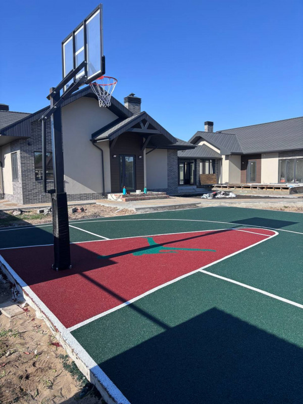 Отдельным пожеланием клиента было сделать участок современным и оригинальным. Поэтому на покрытие спортивной площадки нанесён декоративный рисунок. Монтаж занял три дня – бригада работала слаженно, аккуратно, не нарушив целостность прилегающей растительности. Хотя из-за дождей немного сместился срок доставки, Екатерина оперативно предупредила клиента и контролировала сроки всех работ. В результате семья получила стильную, надёжную и безопасную спортивную площадку, а дети – собственный спортклуб во дворе, куда приходят друзья детей и родителей.
