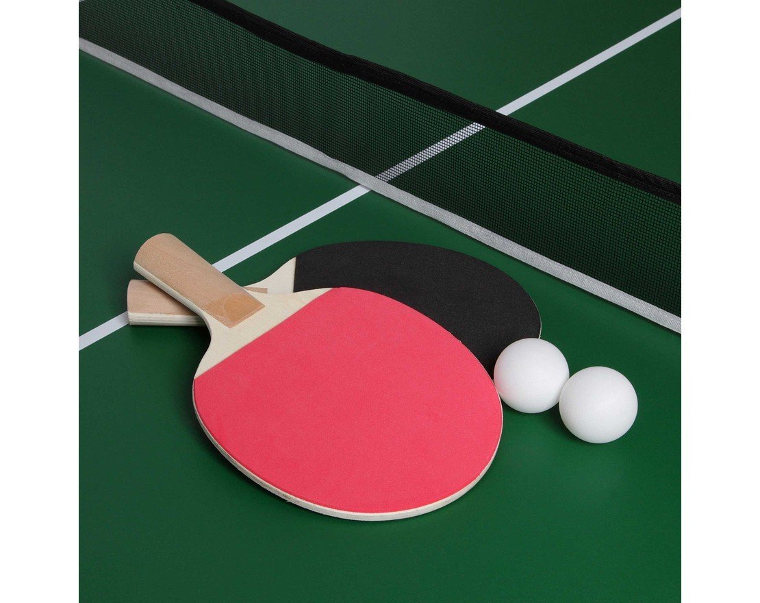 Обратная сторона теннисного игрового поля имеет ламинированную поверхность и может быть использована как столешница письменного или обеденного стола, а также как основание для всех дополнительных игр комплекта