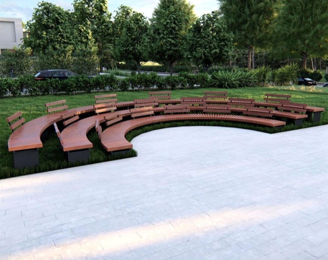 Радиус рассчитывается по внешней стороне скамейки