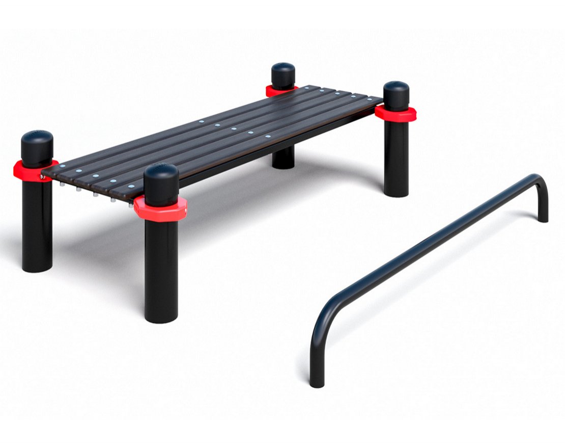 Лавочка для пресса может устанавливаться на улице даже под открытым небом. Снаряд выполнен из качественных и долговечных материалов.